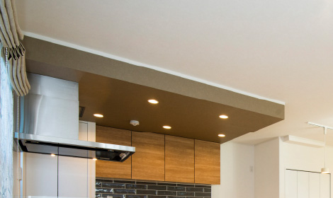 天井の一部を下げることで、空間にメリハリと立体感を生み出します。モダンでデザイン性の高いインテリアを実現します。