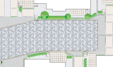 街並みと美しく調和し、印象的な空間を創り出すインターロッキングを採用。地域の景観とシーンを切り替えます。