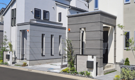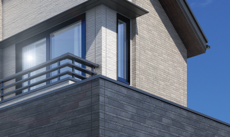 3種のサイディングを組み合わせることで、ファサードを修景。風格のある佇まいを演出します。