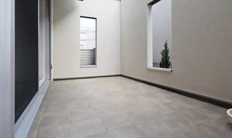 プライベート性の高い半戸外空間「タイルテラス」。駅近にありながら外を感じる暮しが楽しめます。