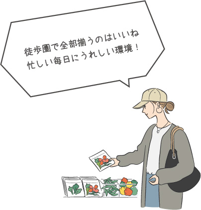 駅ナカ商業施設をはじめ、帰り道に寄れるスーパーやコンビニまで生活利便施設が充実。