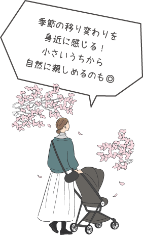 春には新緑、秋には黄色や紅に色づく木々が訪れる人を迎え、日常の中に季節の移ろいを感じさせてくれます。