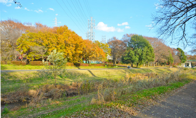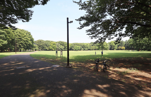 武蔵野の原風景を思わせる雑木林と、視界が開ける草地が広がる自然豊かな公園。
