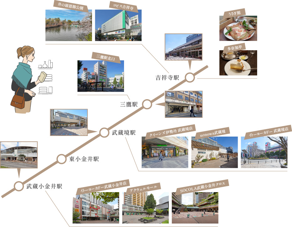 武蔵野の豊かな自然を身近に感じながら、駅前には日々の暮らしを支える